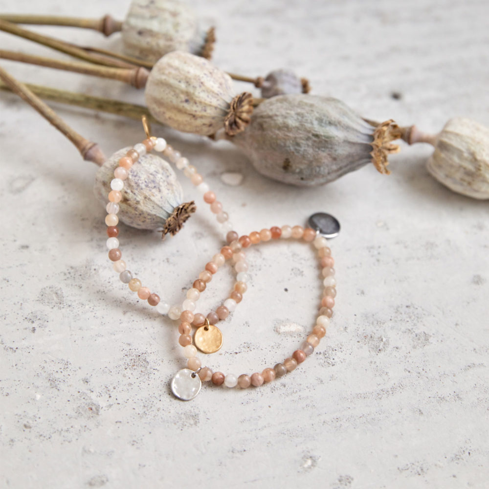 Dieses Armband ist aus feinen, roséfarbenen Mondsteinen gearbeitet.