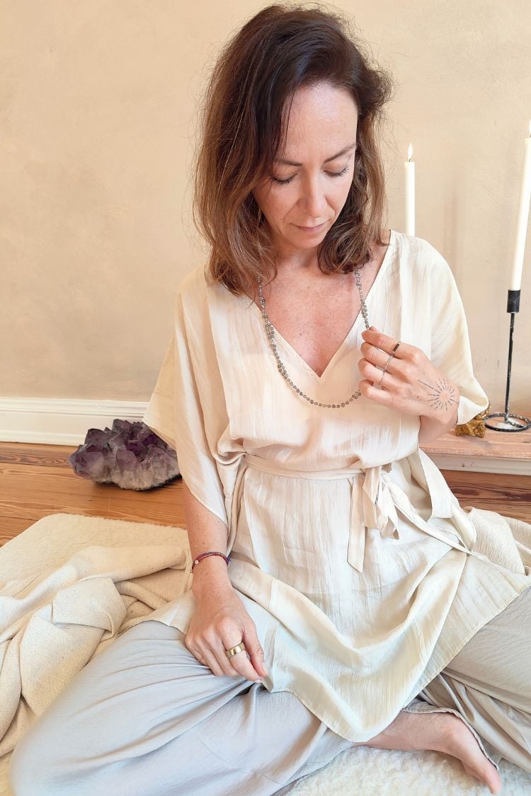 Die Tantric Necklace lädt dich ein, dich deinem spirituellen Wachstum hinzugeben. Sie erinnert sich dich im Alltag und bei deiner Tantra Praxis daran, bewusst zu atmen, dich zu zentrieren und den Moment mit allen Sinnen zu spüren.
