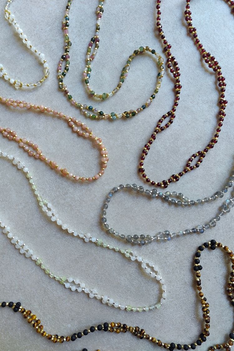 Mit jedem sorgfältig ausgewählten Edelstein, jedem feinen Kettenglied und jeder liebevollen Handbewegung während der aufwendigen Anfertigung entsteht ein Schmuckstück, das dich an deine eigene innere Kraft erinnert.