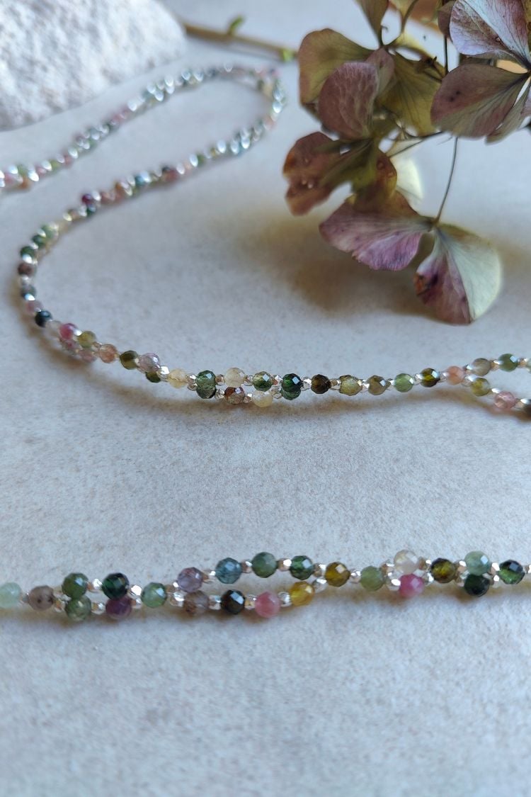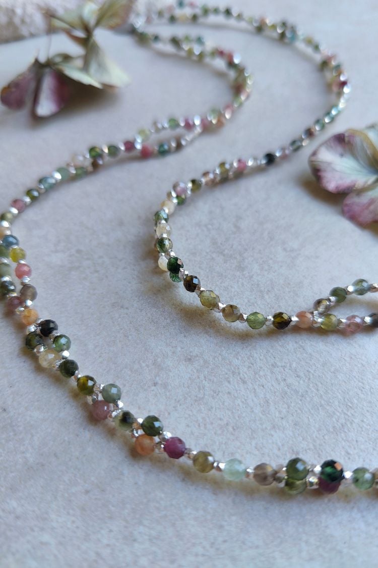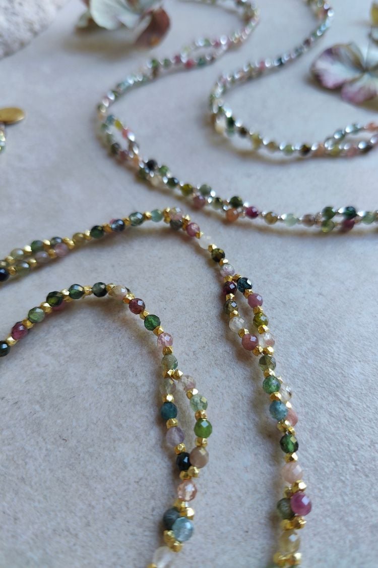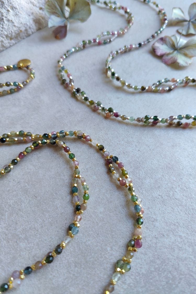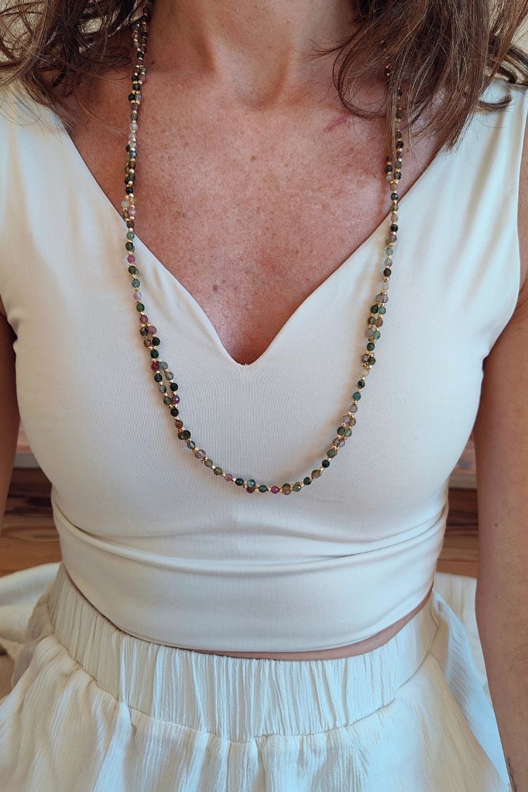 Entfalte den farbenfrohen Schmetterling in dir. Die SACRED METAMORPHOSIS Tantric Necklace aus buntem Turmalin begleitet dich auf deinem Weg deiner spirituellen Transformation und Entwicklung.