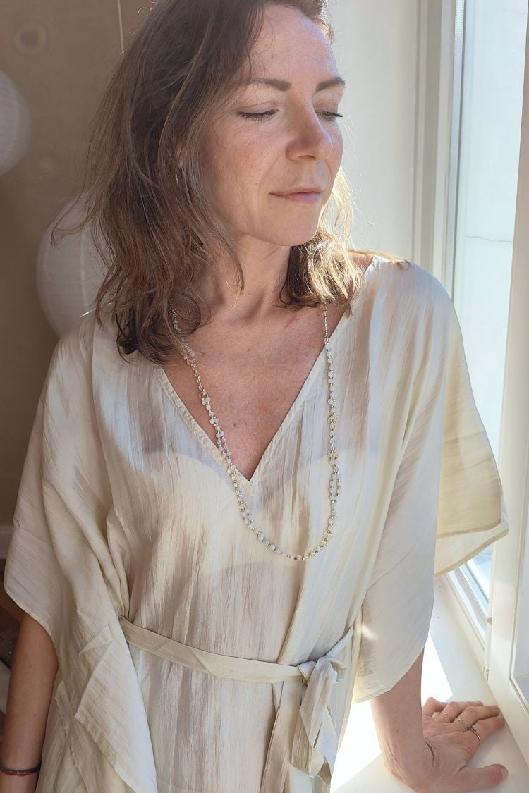 Trage die SOMA & SURYA Tantric Necklace, um deine schöpferische Kraft sanft zu entfalten und dein inneres Licht nach außen strahlen zu lassen.